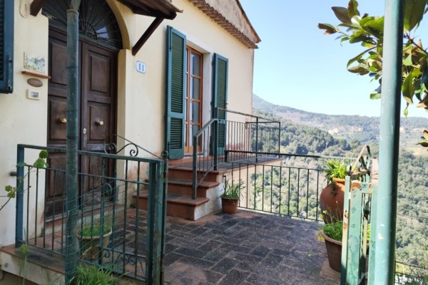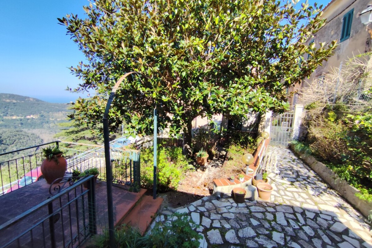 Appartamento indipendente in fabbricato bifamiliare con doppio accesso dalla viabilità pubblica appena fuori il paese di Poggio con una vista panoramica e luminosità tutto l'anno invidiabile. Posta all'ultimo piano del fabbricato é libero su tutti e quattro i lati con scorci panoramici da ciascuno di essi a partire dal verde della vegetazione, al grigio di monte capanne, al blu de mare per finire con il rosso mattone dei tetti del paese e del tramonto estivo. Ad arricchire la potenzialità oltre la superficie generosa interna c'é l'esterno con un giardino a gradoni dominato da una magnolia lussureggiante e dai vialetti da far rivivere con tanti fiori colorati come una volta.