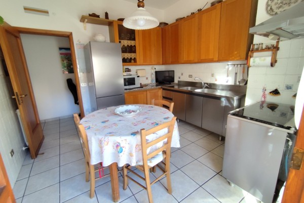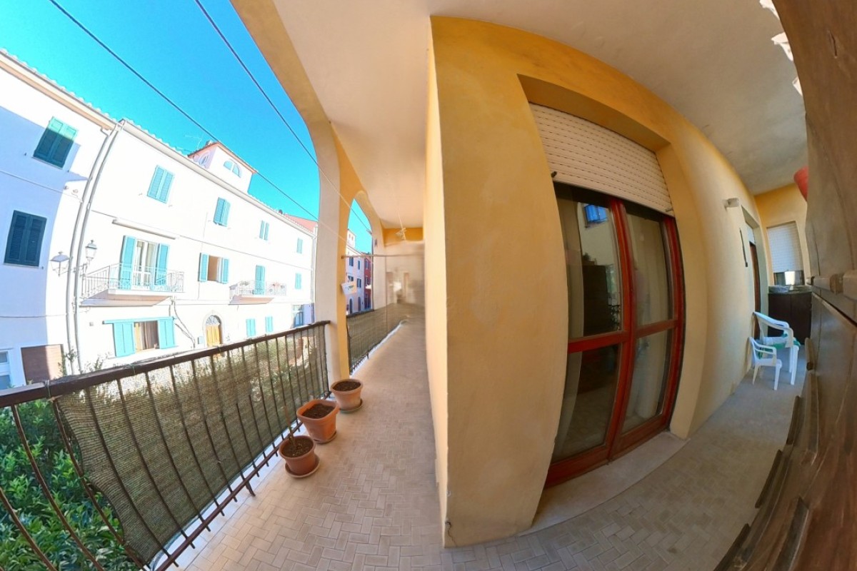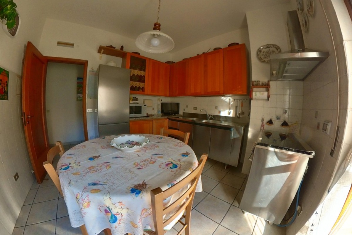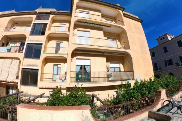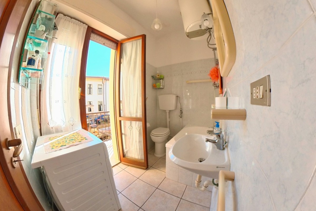 Buona esposizione e dotato di ascensore l'appartamento posto al piano primo si suddivide in ampio ingresso, enorme soggiorno collegato come le camere alla terrazza, lungo corridoio disimpegno per la cucina, i due bagni e le due camere. cucina e bagni hanno il proprio balcone. posto auto privato.